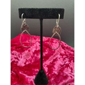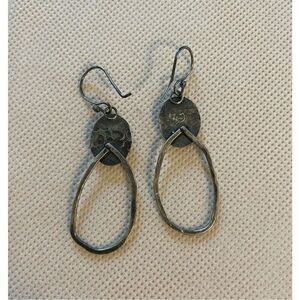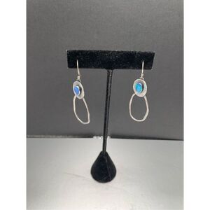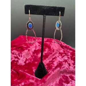 Vintage Artisan Hammered 925 Silver and Lapis Pierced Earrings Fishhook Style