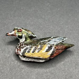 Vintage Artisan Hand Carved Painted Wooden Mini Duck Decoy Bird Pin Brooch ?"