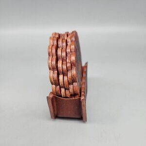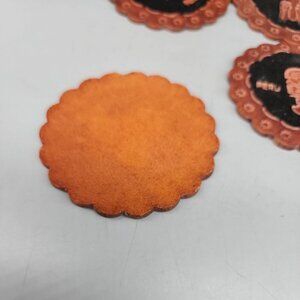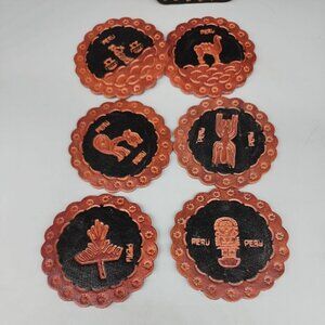 Vintage Artisan Hand Tooled Leather Coasters Made In Peru Set of 6 With Holder.
