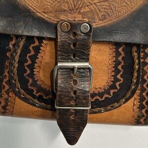 Vintage Artisan Handtooled Leather Purse from Mexico Buckle Close 9” x 8 “