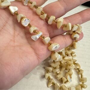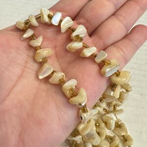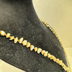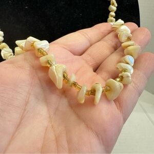 Vintage Artisan Mother of Pearl and Beaded Butterscotch Necklace Handmade