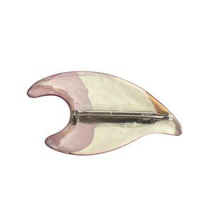 This vintage artisan pottery pin brooch features an abstract design with wine and gold tones. A unique mid-century modern (MCM) estate piece measuring 2.5 inches, perfect for collectors and fashion enthusiasts.