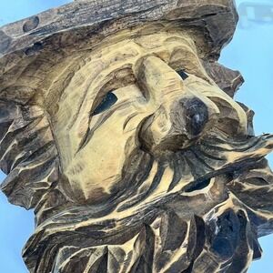 Vintage Artisan Real Wood Hand Carved Old Man Wall Hangings Set of 2 Bearded