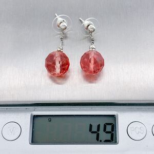 Title: Vintage Sterling Silver 925 Faceted Red Swirl Glass Bead Dangle Earrings