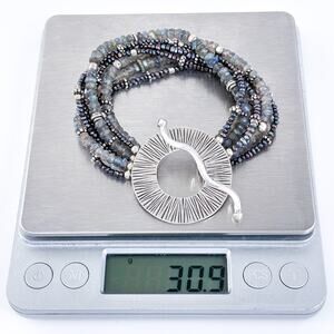 Vintage Artisan Sterling Silver 925 Labradorite Pearl Multi-Strand Bracelet 7"