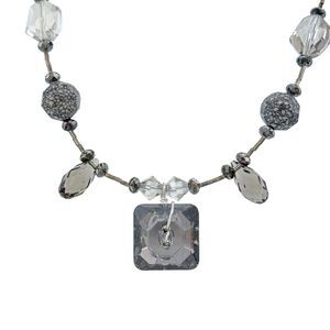 Vintage Artisan Sterling Silver Faceted Glass Beaded Heart Toggle Necklace 16"
