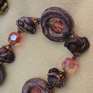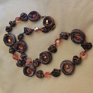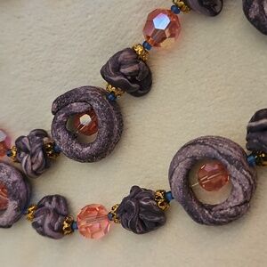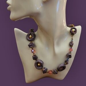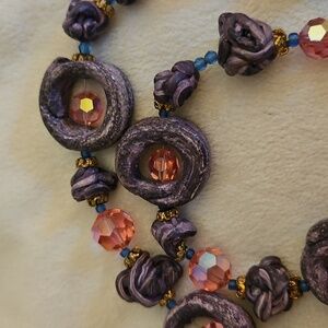 Vintage Artisan Unsigned Clay and Crystal Beaded Necklace