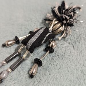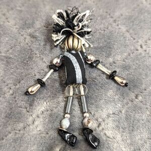 Vintage Artisan Made Rag Doll Brooche w/ Glass and Silver Beads