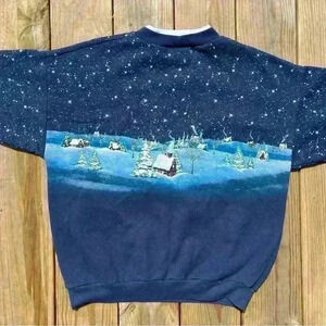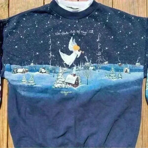 Vintage Artisans Made In Florida Blue Christmas Angels Crewneck Sweatshirt Large