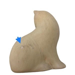 Look at photos carefully to get a better description Note the tiny paint chip on the back--- does nothing to detract from the beauty of this feline