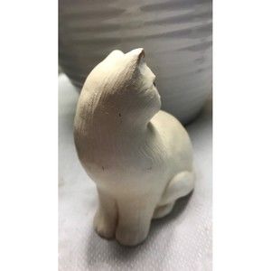 Vintage Artisans Art Pottery White Cat Pottery Figurine 3-1/2" H 1989 Blue Eyes