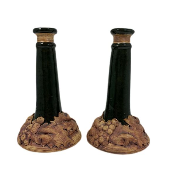 Vintage Artist Signed Candlesticks 2002 Terrafirma Ceramic Cabin Core Rustic No chips or cracks Measures 7” tall x 4” in diameter