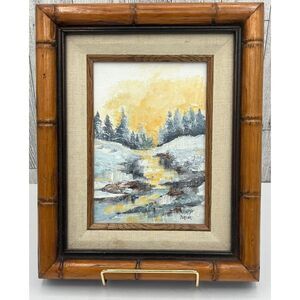 Vintage Artist Signed Painting Annette Perone Leiber Mountain Lake Framed