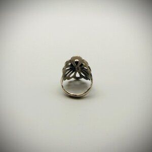 Vintage Artist-Signed Sterling Silver Palomino Turquoise Floral Ring – Size 7.5
