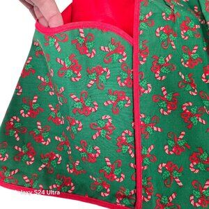 This charming vintage apron skirt brings the holiday spirit to your kitchen with its delightful candy cane print. Handmade with care, it features festive red and green hues that evoke nostalgic memories of holiday baking and family gatherings. Perfect for adding a touch of Christmas cheer to your culinary adventures.