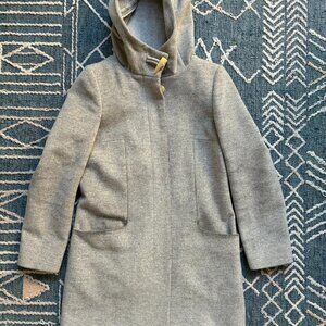 This beautiful coat has a soft brushed grey exterior and silky interior, and a hood that covers everything while still not overwhelming your face. Concealed buttons and an interior pocket for your phone, money, or lipstick!