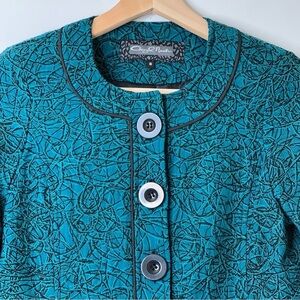 Vintage Cheryl Noah Artsy Abstract Print Button Front Blazer Jacket Women's S Pockets