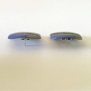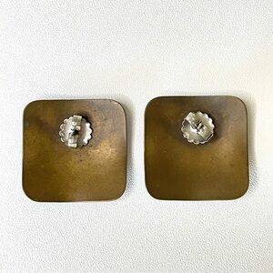 Vintage Artsy Handmade Earrings Oversized Rounded Square Stud Blue Gold Silver