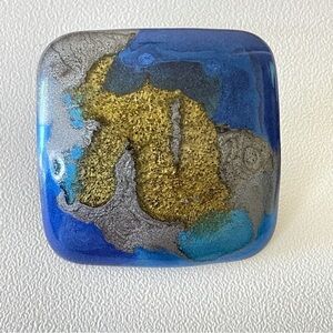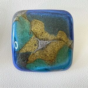Vintage Artsy Handmade Earrings in Blue / Gold / Silver. Oversized stud style in a rounded square shape. Material unknown.