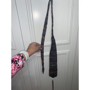 Keywords: men's tie, multicolor tie, geometric pattern tie, polyester tie, adjustable tie, classic width tie, vintage tie, pre-owned tie, formal wear, business attire, wedding accessory, men's fashion, unbranded tie, one size tie, men's accessories