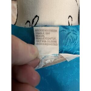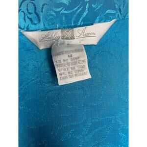 Indulge in luxury with this vintage Ashley Amos women's robe. The long sleeve robe features a satin feel and is made of lightweight polyester material, making it perfect for a cozy night in. The blue color, floral pattern and size SM make it a great addition to any sleepwear collection.