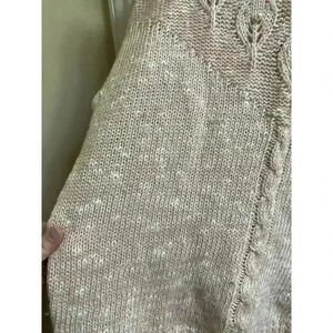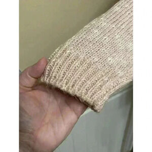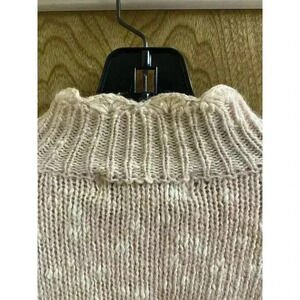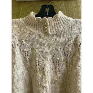 Vintage Ashley S Pink White Heathered Knit Sweater With Pearl Button Mock Neck S