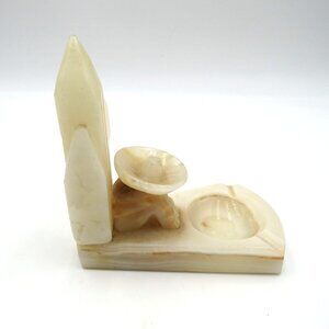 Elegant and functional carved alabaster piece featuring a built-in ashtray and match holder for a refined addition to your decor. Can be used for trinket dish or key holder.