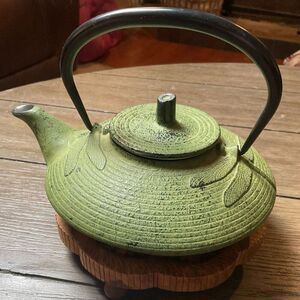 Made in Japan. Beautiful green cast iron with dragonfly embellishments