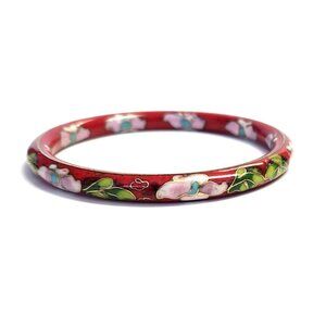 This vintage Asian Cloisonne bracelet features exquisite red floral designs, perfect for adding a touch of elegance to any outfit. Its timeless beauty makes it a wonderful gift or a cherished addition to your jewelry collection.