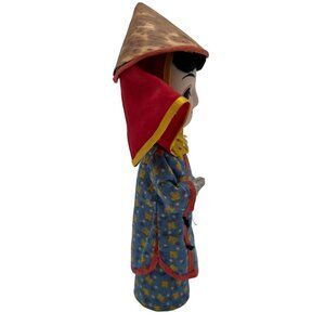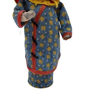Vintage Asian Cylinder Cloth Doll With Rice Hat & Colorful Outfit Folk Costume
