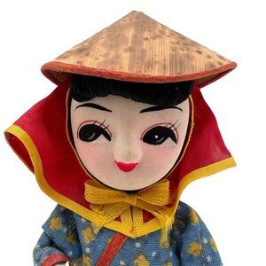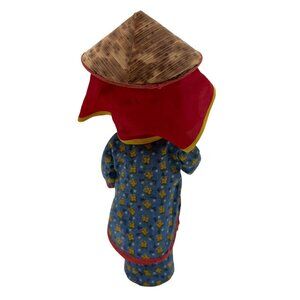 This delightful little doll is a true collector's gem, sporting a rice hat that could double as a mini sunshade. Dressed in vibrant, traditional attire, she's ready to bring some cultural charm to your home. A charming companion who won't steal your snacks.