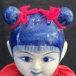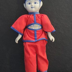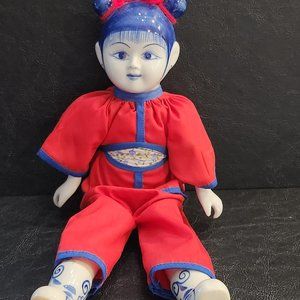 Vintage Asian blue and white porcelain girl doll measures 12 inches in height in excellent condition comes with stand. Evoke the grace and charm of the Orient with this vintage Asian blue and white porcelain girl doll. Standing at a regal 12 inches in height. This doll embodies exquisite craftsmanship and timeless beauty. In excellent condition and accompanied by a stand. This vintage collectible is ready to grace your space with its delicate allure. This vintage Asian porcelain girl doll is a captivating addition to your collection. A testament to the artistry of the East and a touch of vintage elegance to your decor. Head arms and feet are porcelain. Free of any Nicks or chips. Body is filled cloth. Doll comes with display stand. Non smoking that free home. @ ER NW Boxed