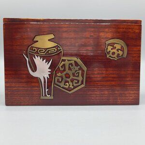 Vintage Asian Decorative Wooden Trinket Box Metal Inlays with Lid