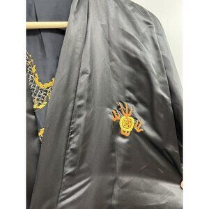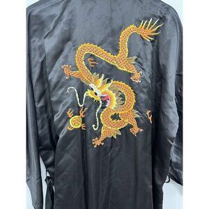 Vintage Asian Golden Dragon Embroidered Chinese Robe Black Kimono one size