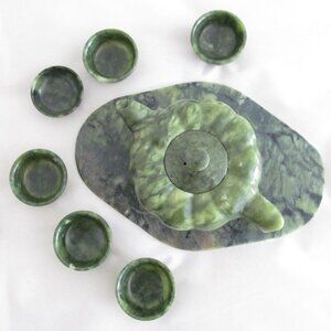 Vintage Asian Jade Teapot Cups and Tray Set in Original Box