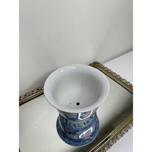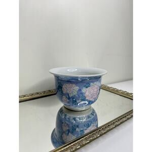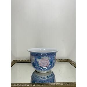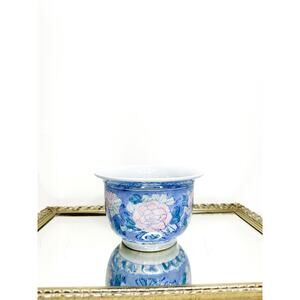 Vintage Asian Jardinière Planter 7" Wide by 4 1/4" Tall Blue and White with Pink