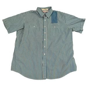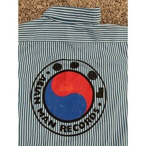 Vintage Asian Man Records Unitog USA Made XL Uniform Striped Button Up Shirt VTG