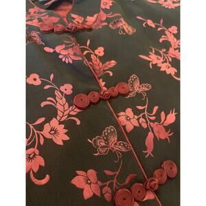 Vintage Asian Shirt Medium Silk Floral Butterfly Traditional Chinese Whimsygoth