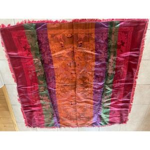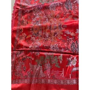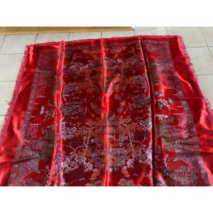 Vintage Asian Tapestry Brocade Piano Shawl Red Chinese 58" Tablecloth Excellent