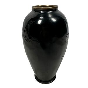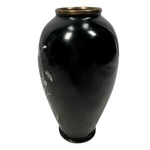 Vintage Asian Vase Enamel Over Brass with Mother of Pearl Inlay Flower Floral 6"