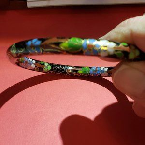 Black Lacquer with hand painted flowers Bangle Bracelet
