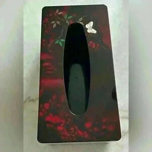 Vintage Asian plastic tissue box. This tissue box is tortoise shell style plastic with a sweet butterfly,flower,fan design. Great used condition. No chips or cracks.