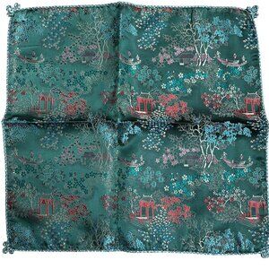 Vintage Asian-Inspired Green Silk Pillow Covers Pagoda Design Set Of 2 17x17