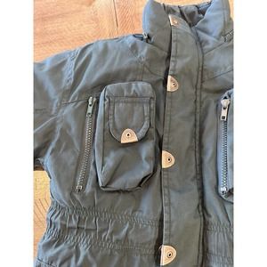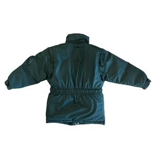 Get ready for the winter sports season with this vintage Aspen Sport ski jacket. This forest green jacket is perfect for kids and has a full zip with snap button closure, collared neckline, and adjustable Velcro wrist on sleeves. The jacket is made with a polyester blend outer shell material and is filled with down feathers for ultimate warmth.