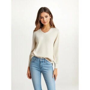 Vintage Aspetcuk Trading Co. Women's XL White V-Neck Knit Pullover Sweater