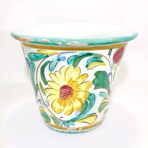 Vintage Assisi Small Planter Plant Pot Floral Art Pottery Decorative Italy 5"