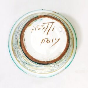 Crafted from high-quality clay, this glossy finish planter is signed by the artist, who seems to have forgotten how to spell "Assisi", and is a unique addition to any collection. The Assisi name is known for exquisite Italian artistry, making this planter a true piece of art. Care instructions are simple, just clean with a damp cloth. This planter is perfect for anyone who loves flowers and wants to add a touch of elegance to their home. As is often the case in vintage Italian pottery, there is some glaze chipping. See photos.