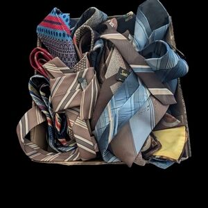 A collection of assorted men's ties in various colors and patterns. Perfect for adding variety to your wardrobe. all from the 60/70s and smoke free. at least one is 100% Italian silk