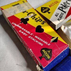 Vintage Astor Poker Chips Lot Red White Blue Plastic Original Boxes Retro Gaming