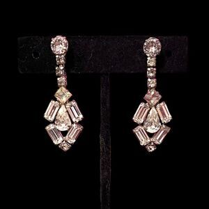 Vintage Astra Joseph Wiesner Rhinestone Dangle Screw Back Earrings EUC